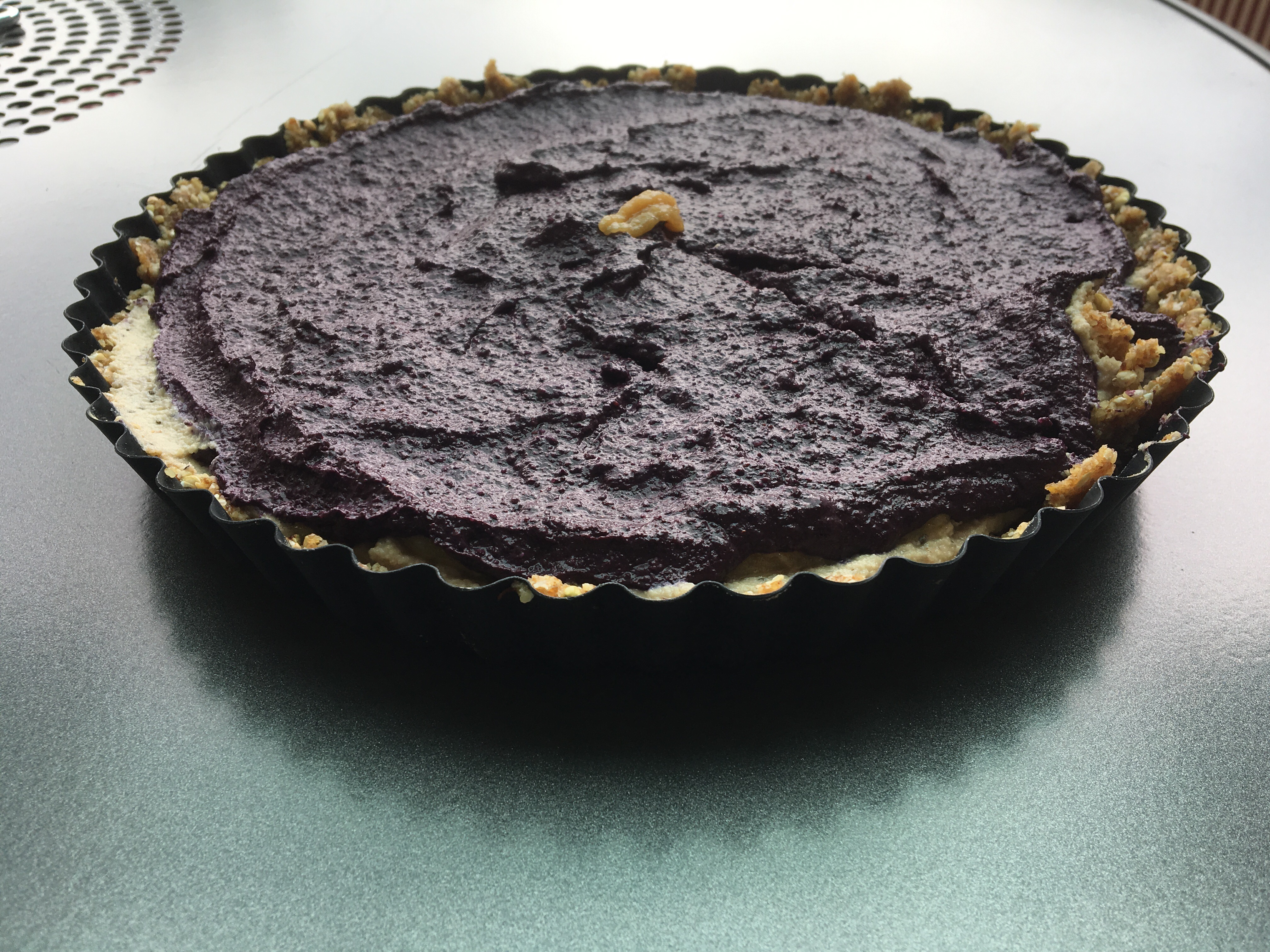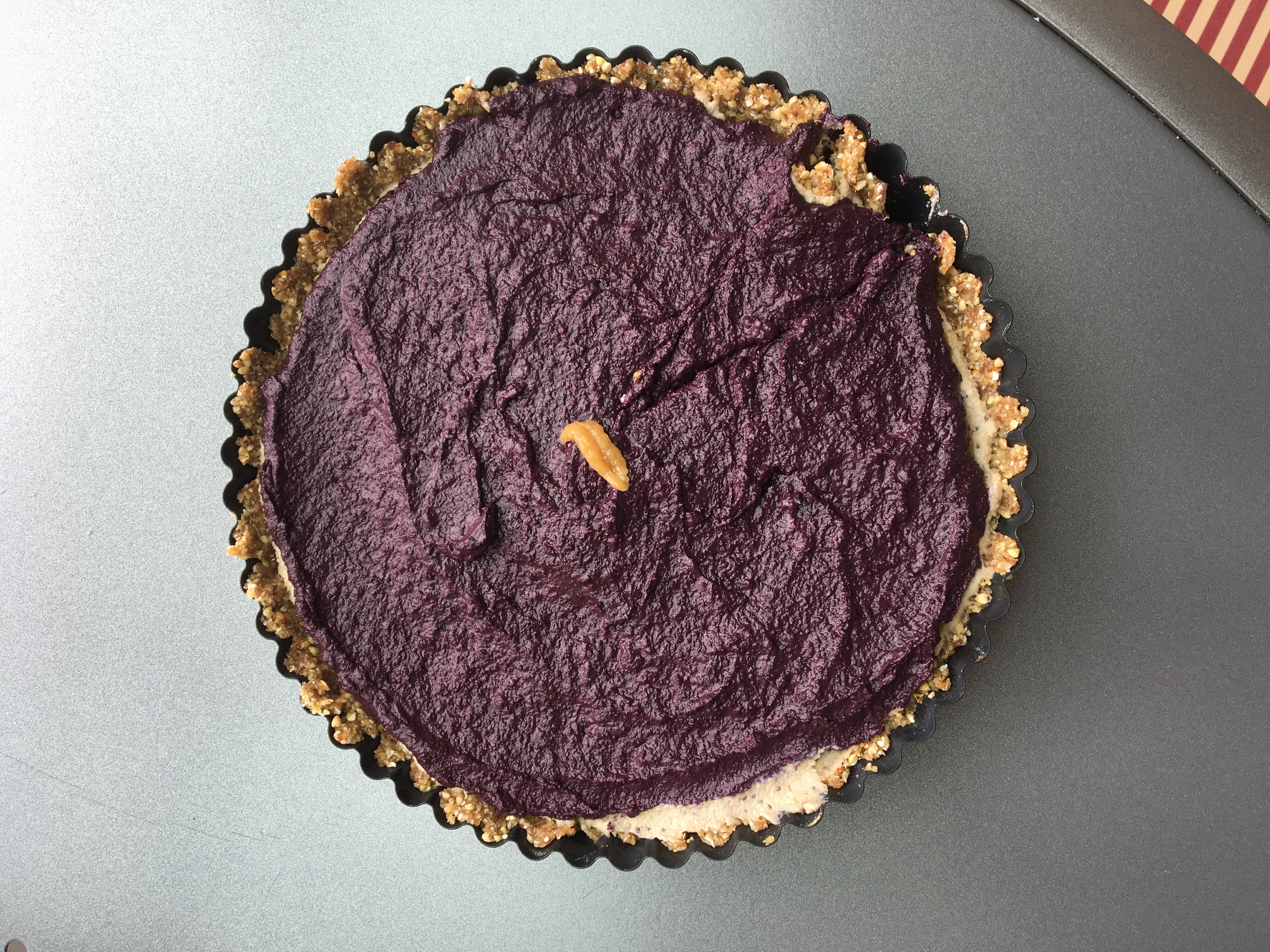 Blend all the ingredients for the bananacream until it’s really smooth and fill into the crust – put in freezer again.
