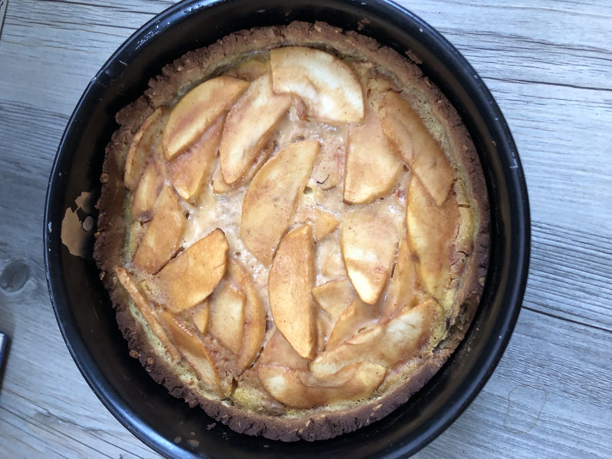 Tipp: If you love poppy seed as much as I do you can also mix it into the pudding liquid so you have a poppyseed-apple-pudding-pie.